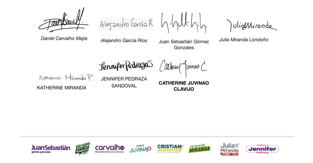 Su capacidad para construir puentes entre posiciones diversas, su firmeza en poner por delante las necesidades del pueblo y el Estado colombiano, y su visión siempre fundada en los derechos humanos, las libertades, la paz y la justicia social, nos hacen creer en usted como ese faro, esa brújula y ese refugio para los turbulentos momentos de nuestra historia nacional.